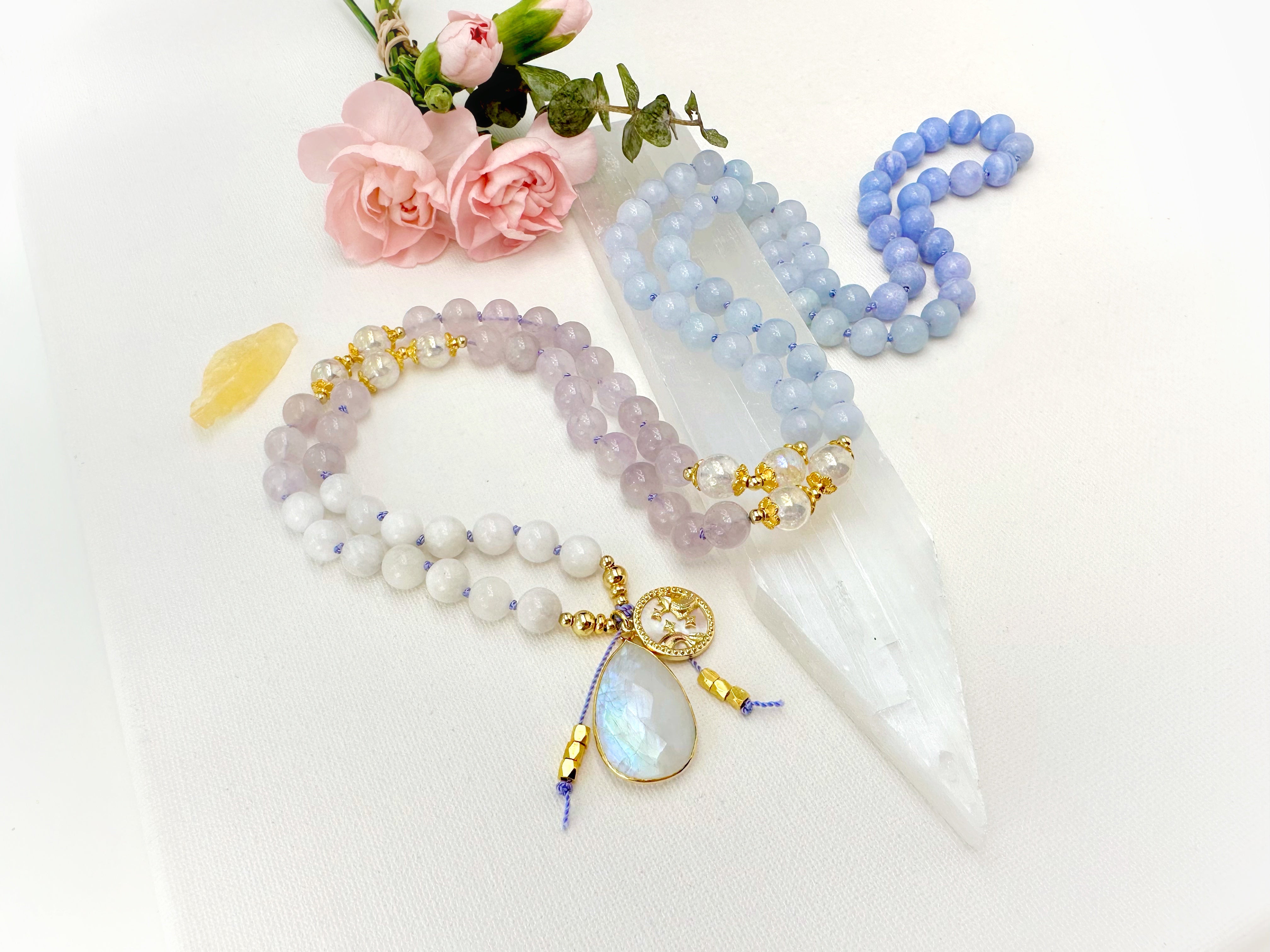 I only use natural gemstones and crystals to handcraft each and every one of my Malas. There might be small differences in colors, shapes and sizes. I carefully choose the stones that go in to each and every piece and I can assure the aesthetics of your piece will be just as beautiful as you see in the picture above. All pieces are made with love in my smoke-free and pet-free studio.