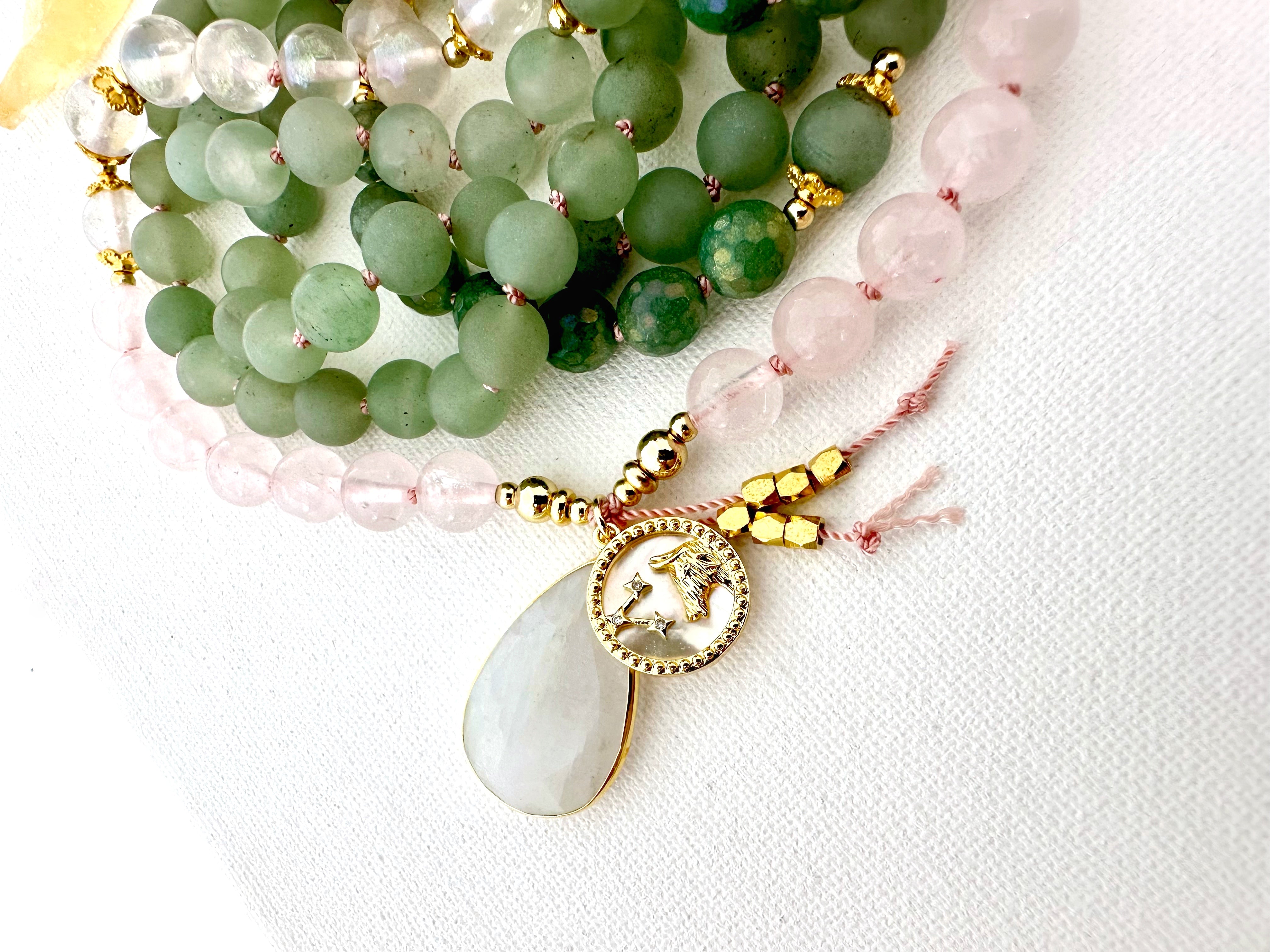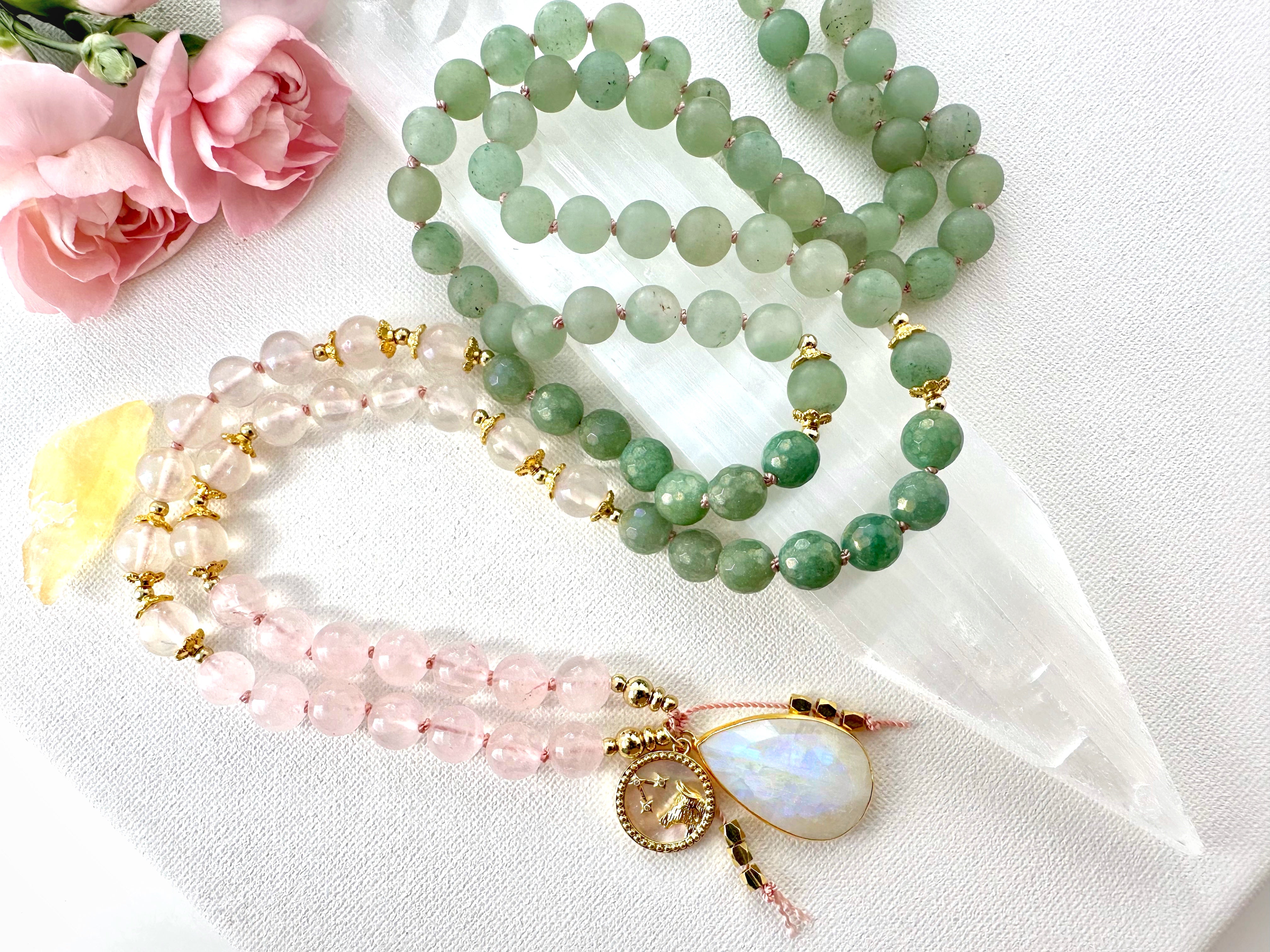 Taurus Mala Necklace - Green Aventurine and Rose Quartz Meditation Beads